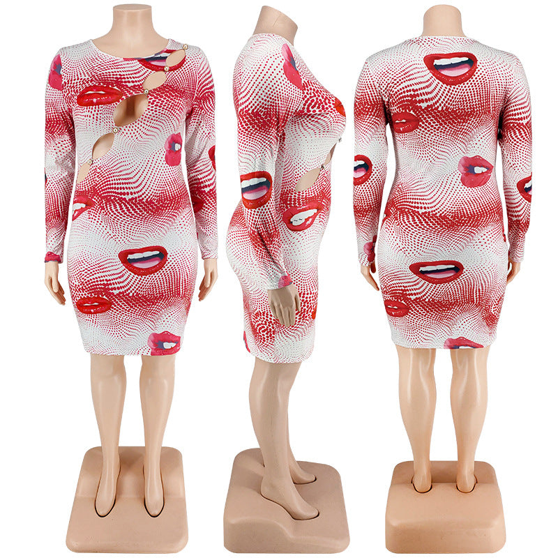 • Load image into Gallery viewer, Sexy color lip print cutout dress(AY2504)