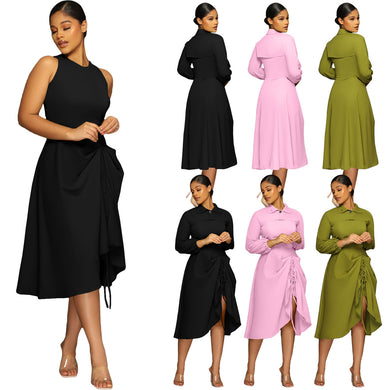 Gathered Tank Top Dress Shawl Short Jacket Set(AY2258)