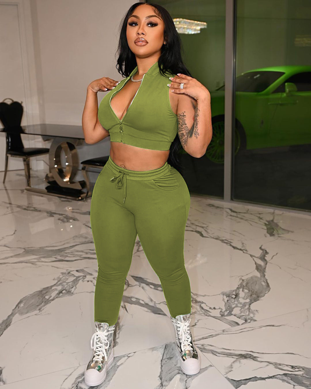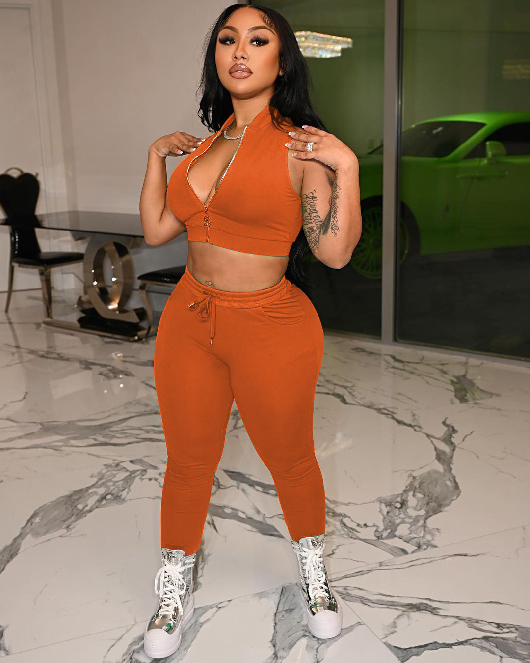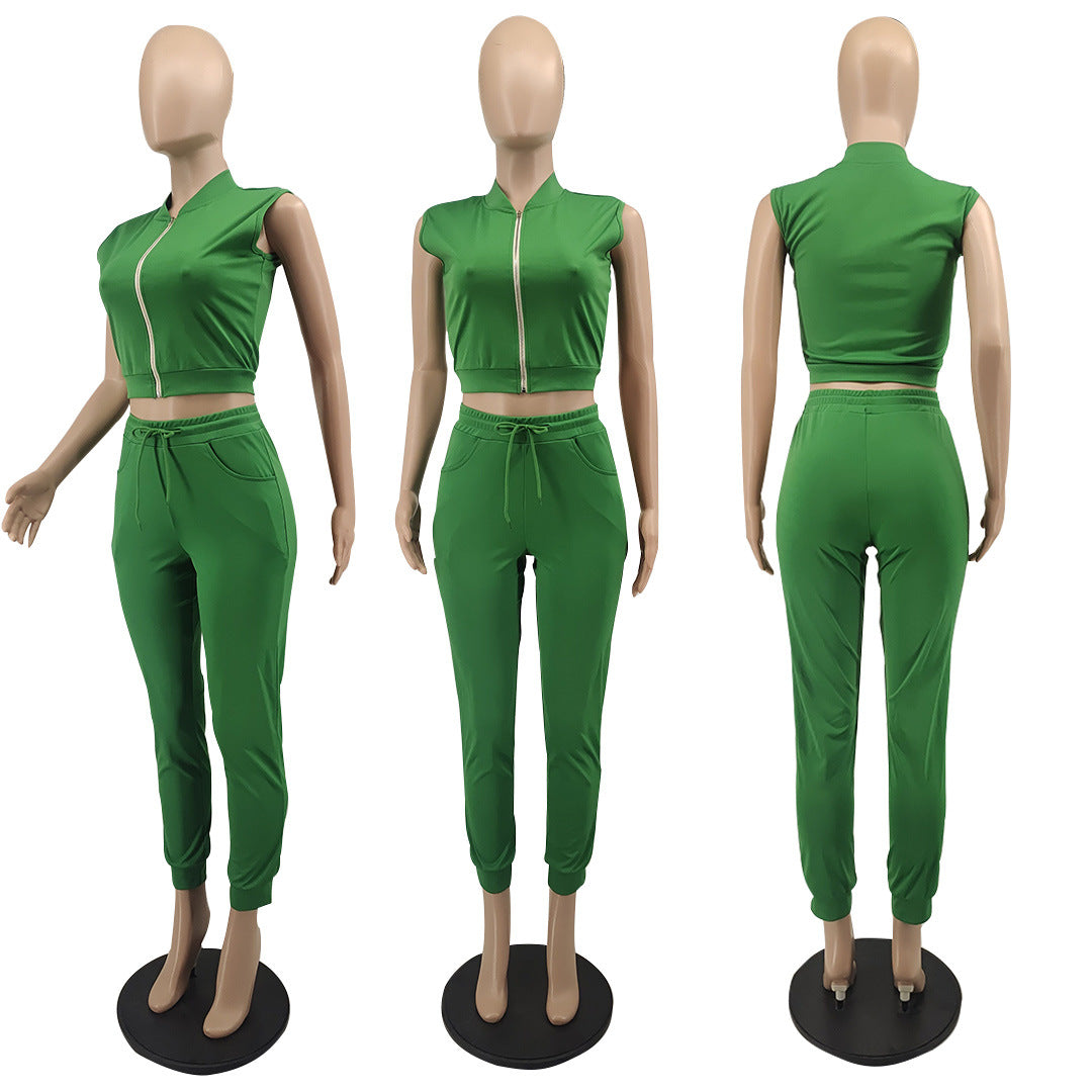 Baseball suit collar zipper vest two-piece set AY1898