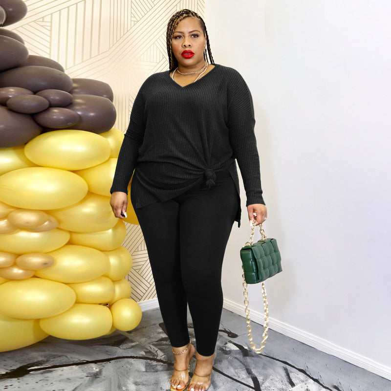 Fashion Solid Color V-Neck Casual Two Piece Set(AY2305)