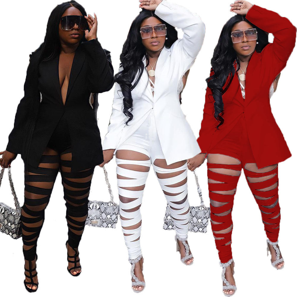 • Load image into Gallery viewer, Sexy solid color hollow suit suit(AY2339)