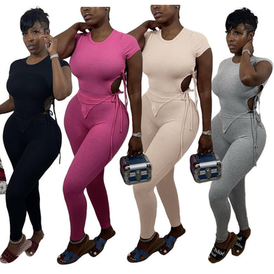 Slim-fit T-shirt high waist split suit AY1178