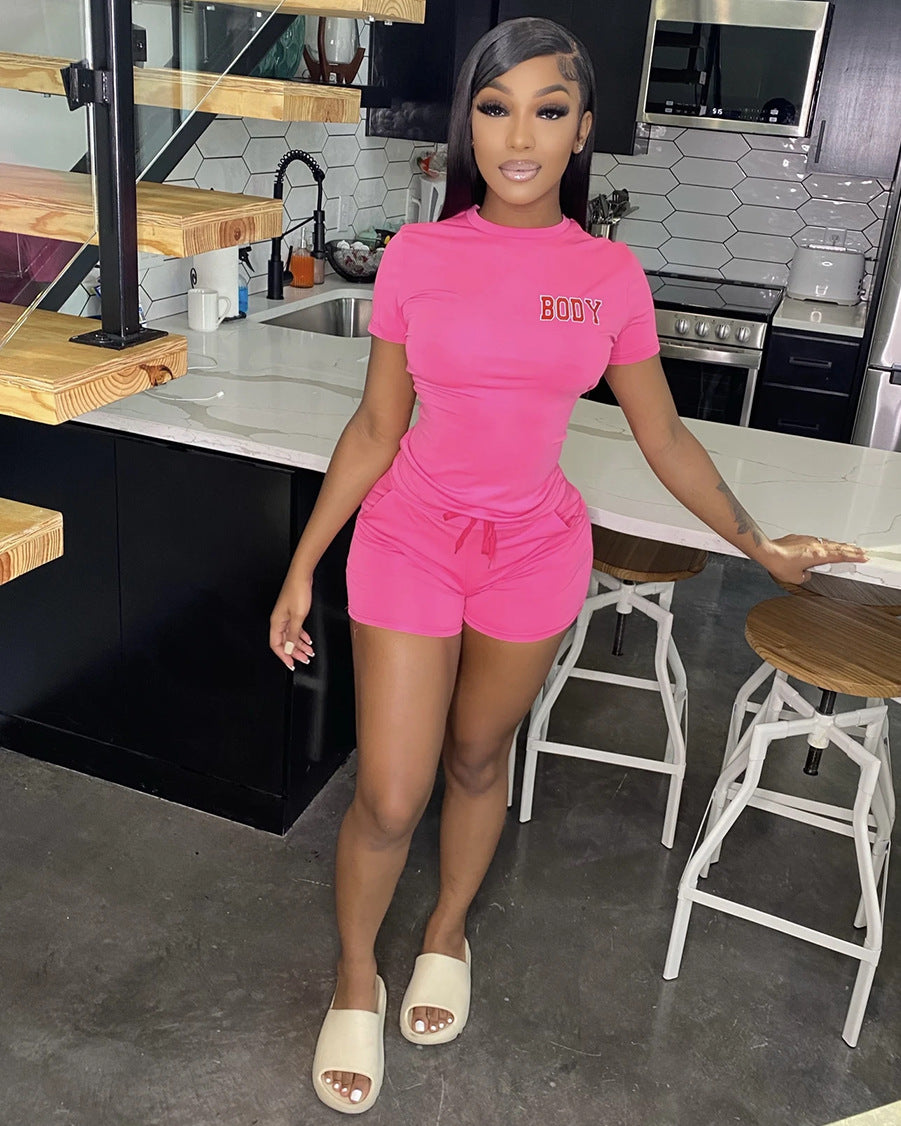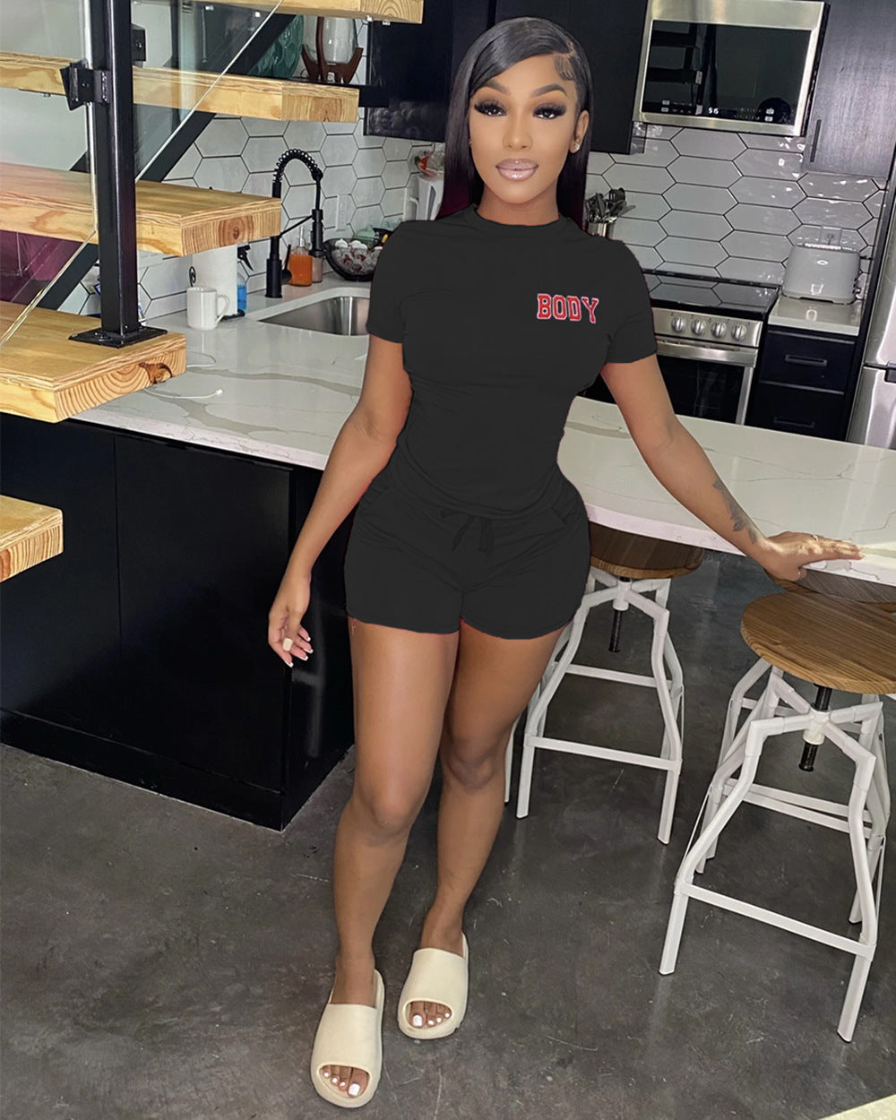Fashion Solid Color Letter Print Short Suit(AY1758)