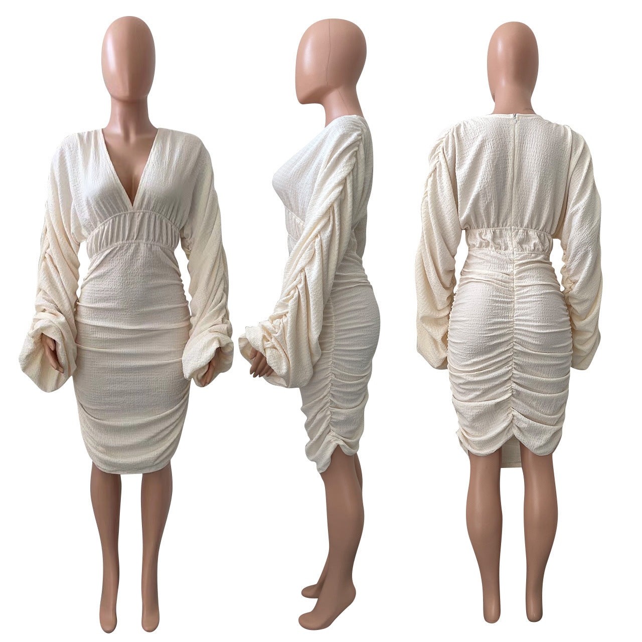 • Load image into Gallery viewer, New pleated bubble sleeve dress(AY2502)