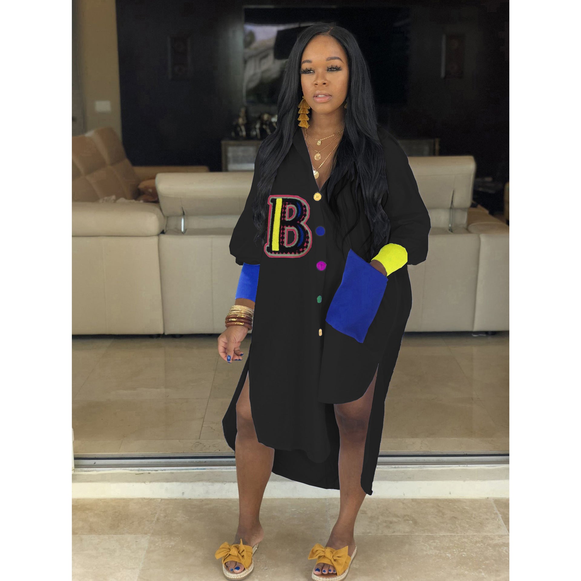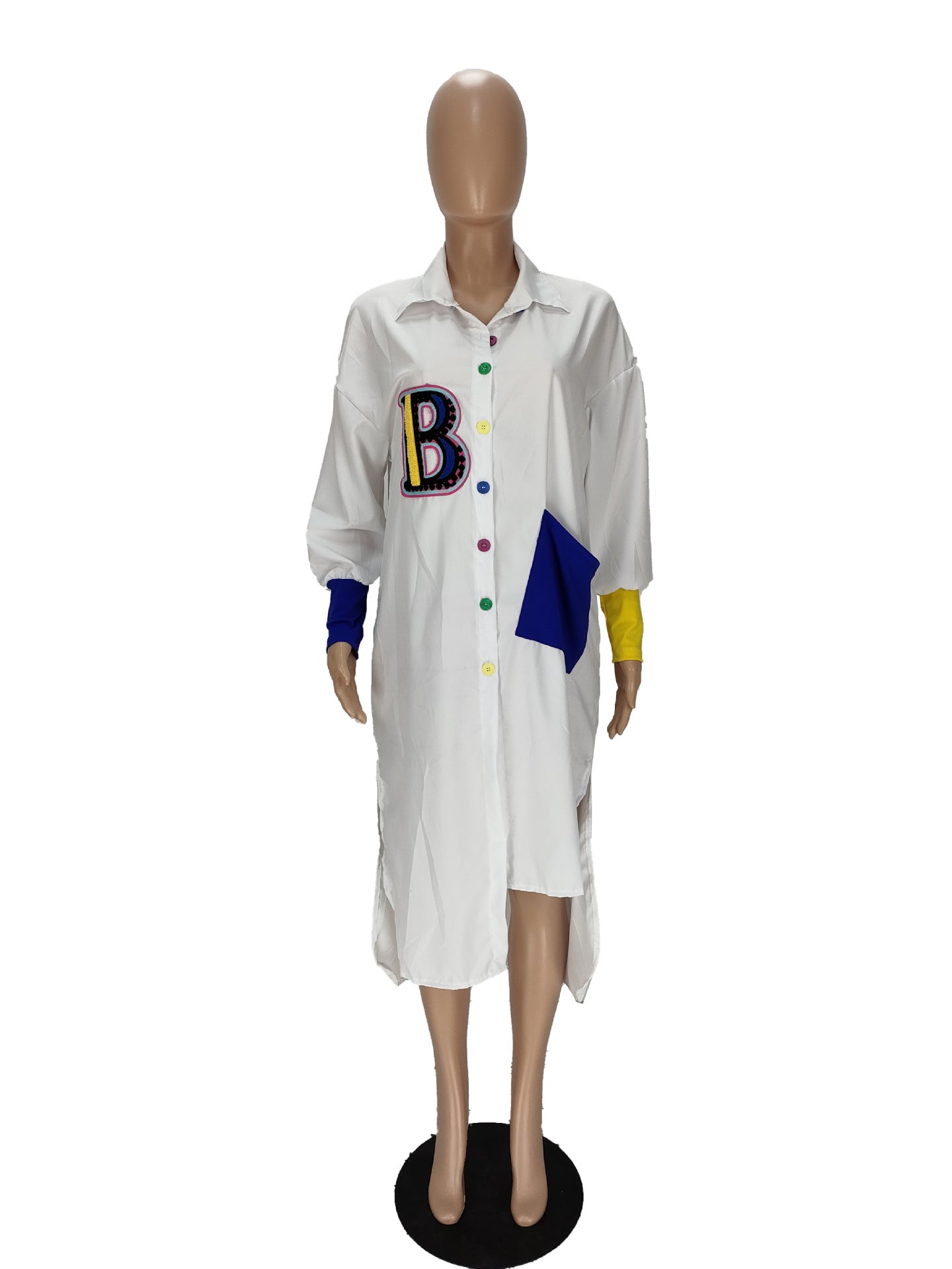 Fashion Color Blocking Irregular Shirt Dress(AY2381)