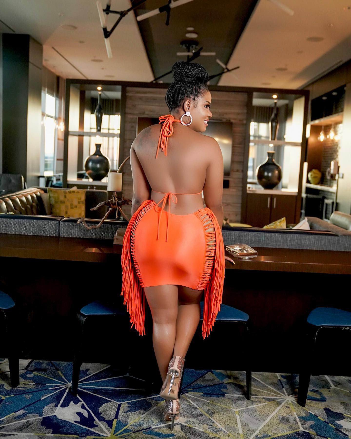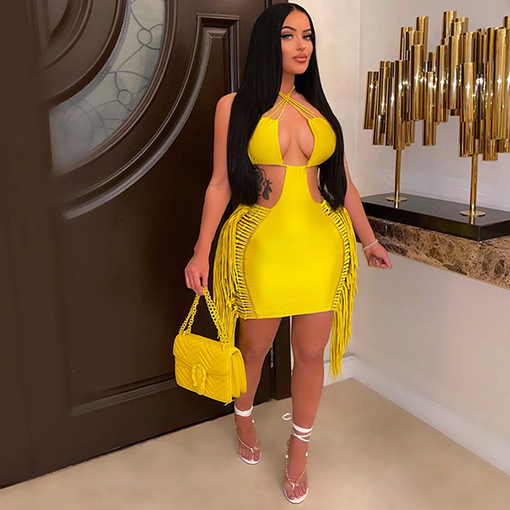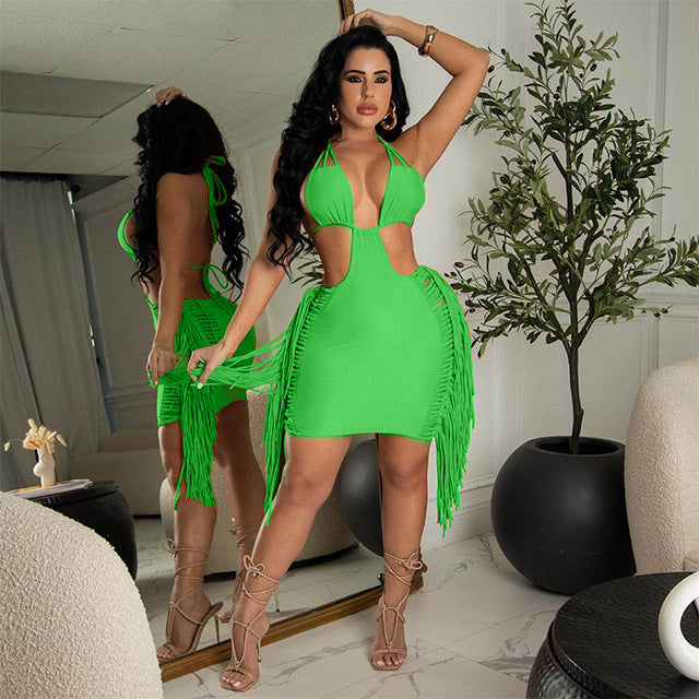 • Load image into Gallery viewer, Fringed skirt tie sexy dress AY2029