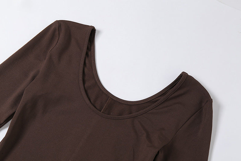 Low-necked tight long-sleeved high-waisted solid color sports jumpsuit AY2657