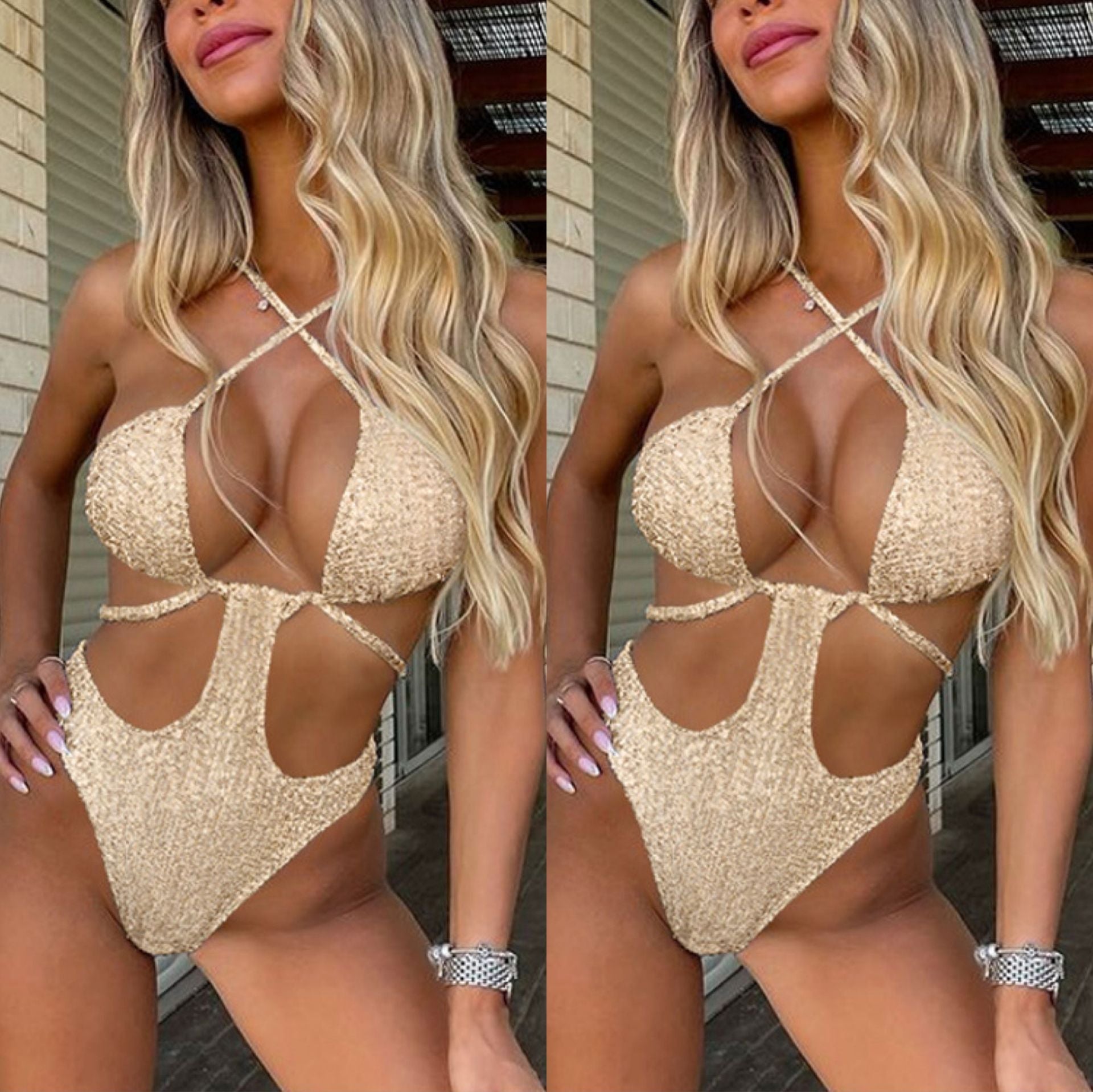 Gold One Piece Bikini One Piece Swimsuit(AY1745)