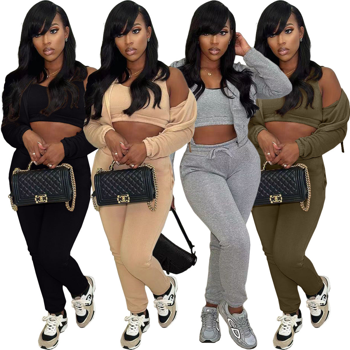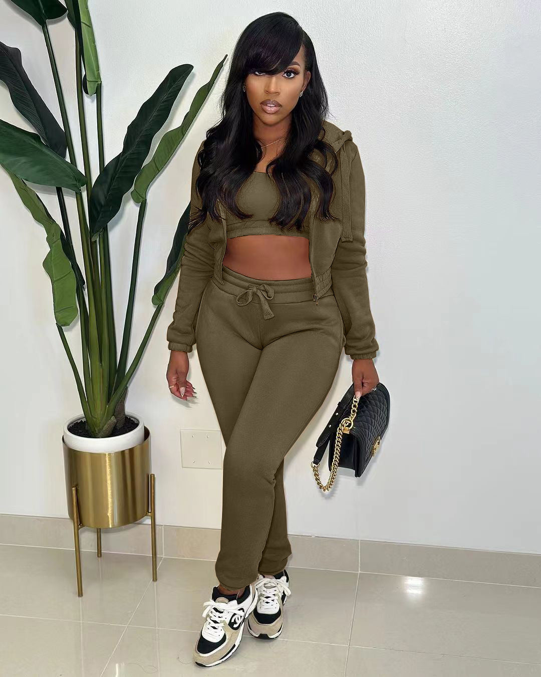 Plush sweater hooded sports casual set AY3233