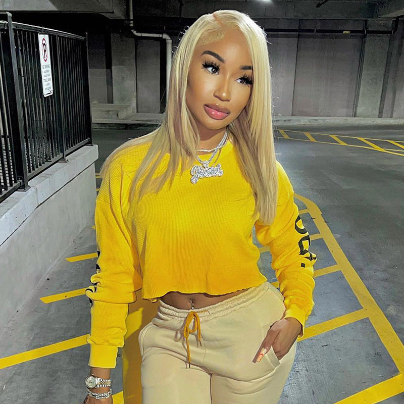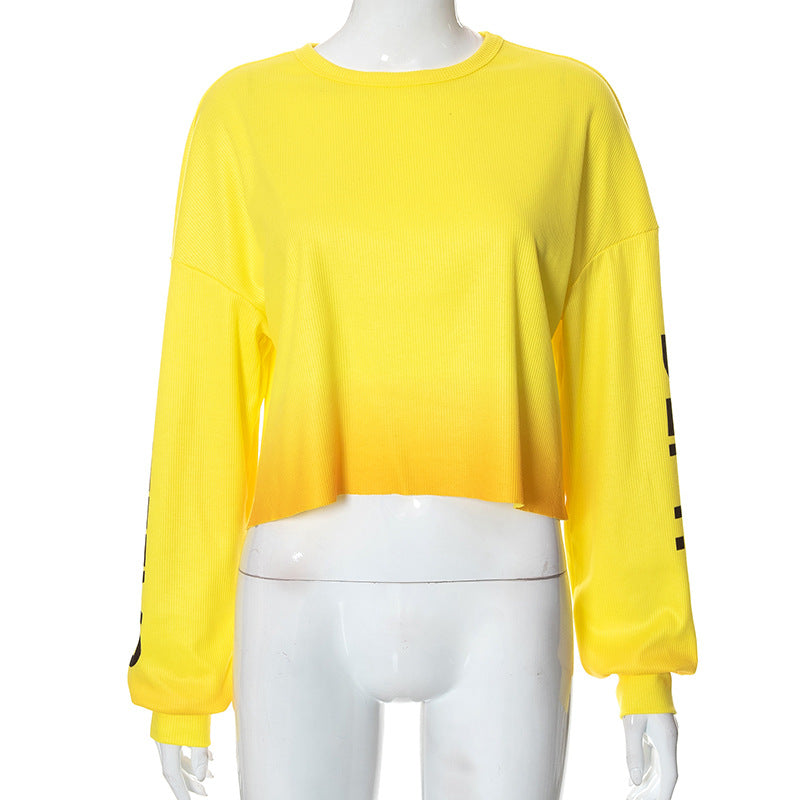 Gradient round neck printed long sleeved T-shirt top(AY2412)