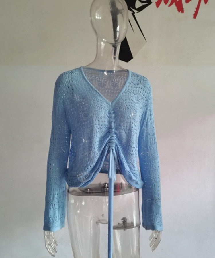 Hollow Flare Sleeve Knit Sweater(AY2355)