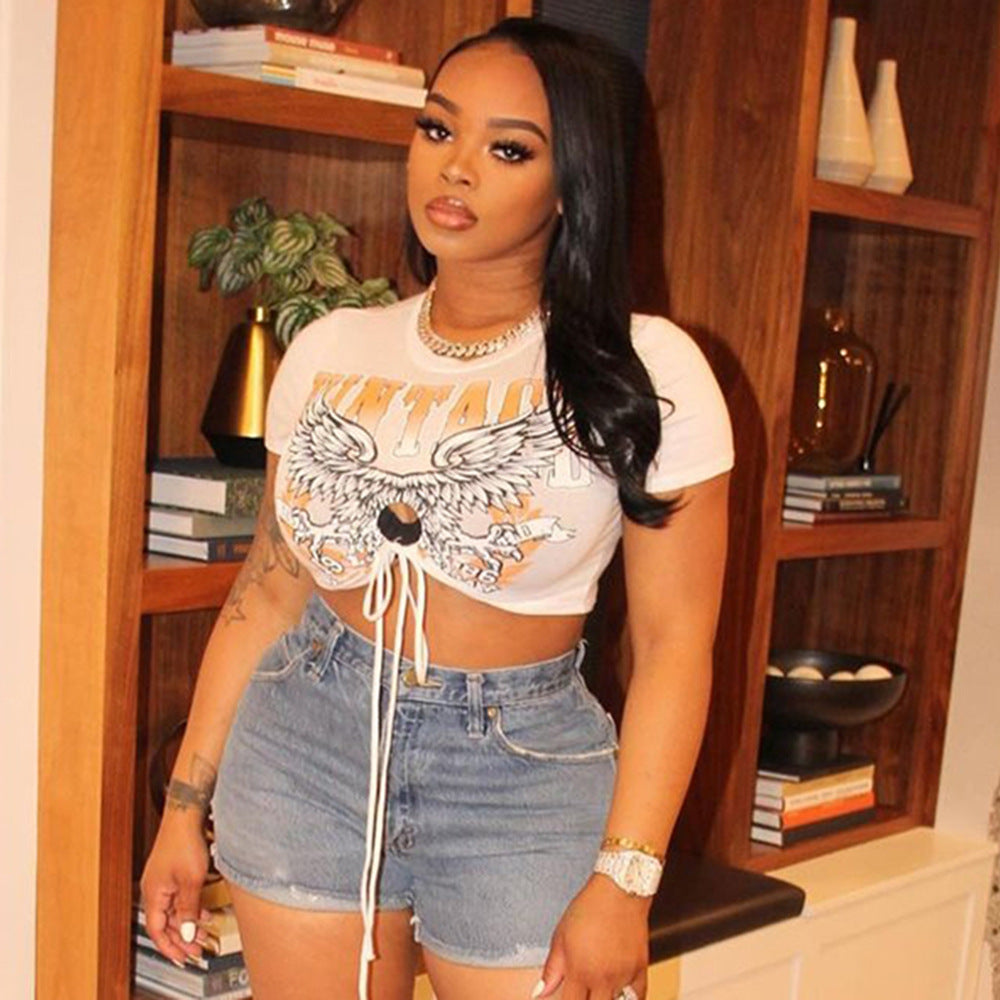• Load image into Gallery viewer, Hollow letter short sleeved lace up top AY2768