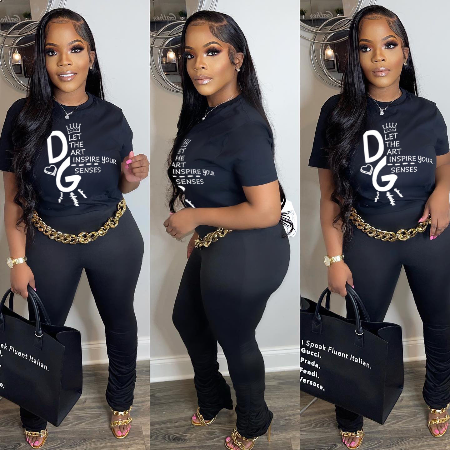 Letter Print Round Neck Short Sleeve T-Shirt AY2715