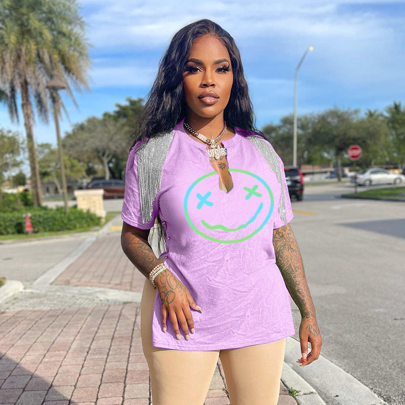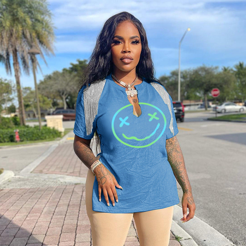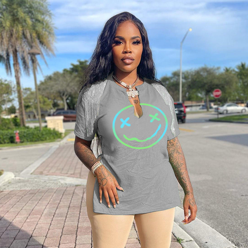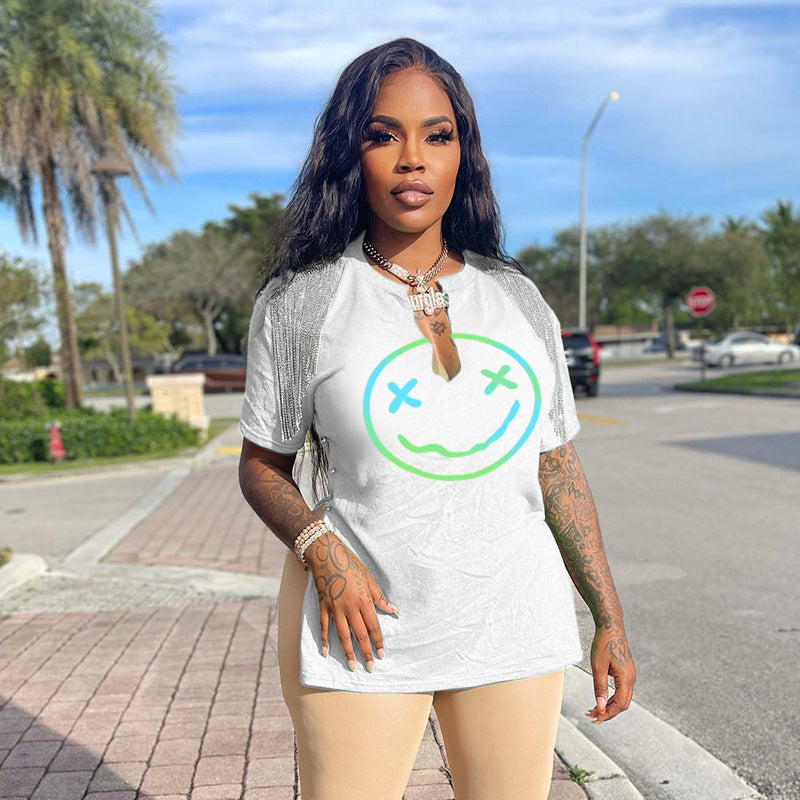 Sexy Smiley Print Cropped T-Shirt(AY2214)