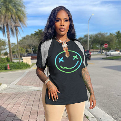 Sexy Smiley Print Cropped T-Shirt(AY2214)