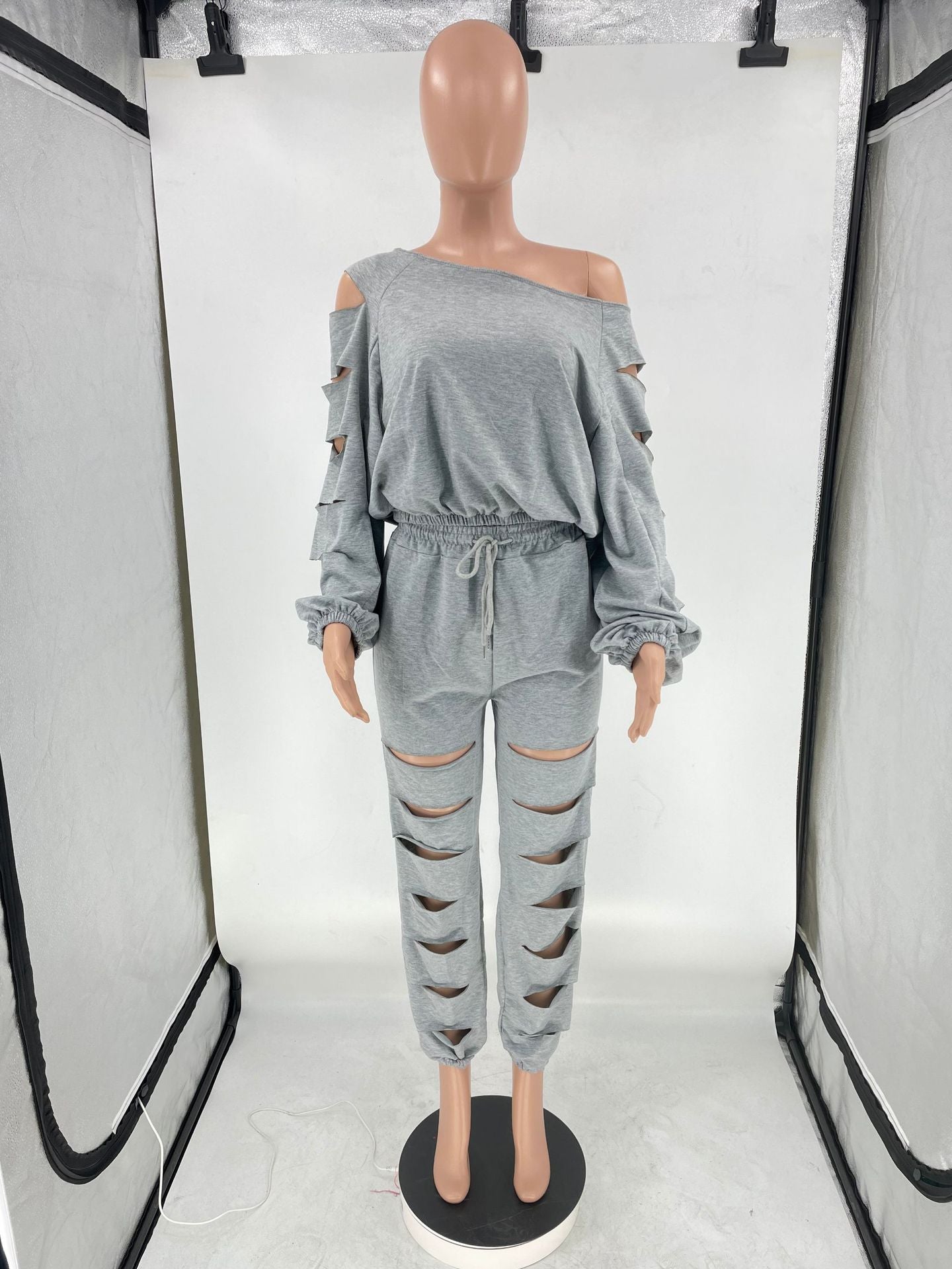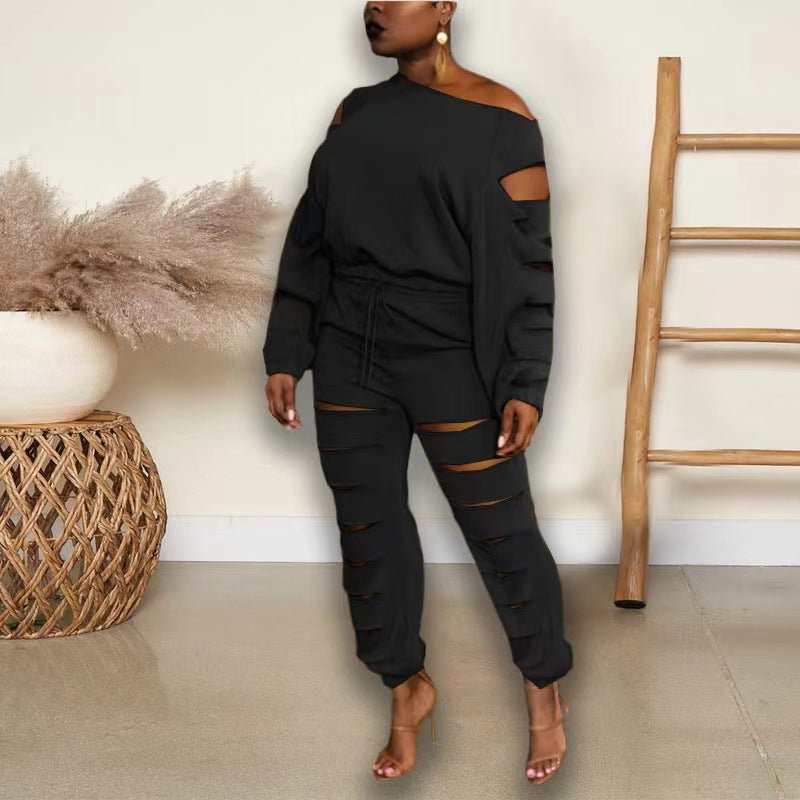 Hollow diagonal shoulder two-piece set(AY2456)