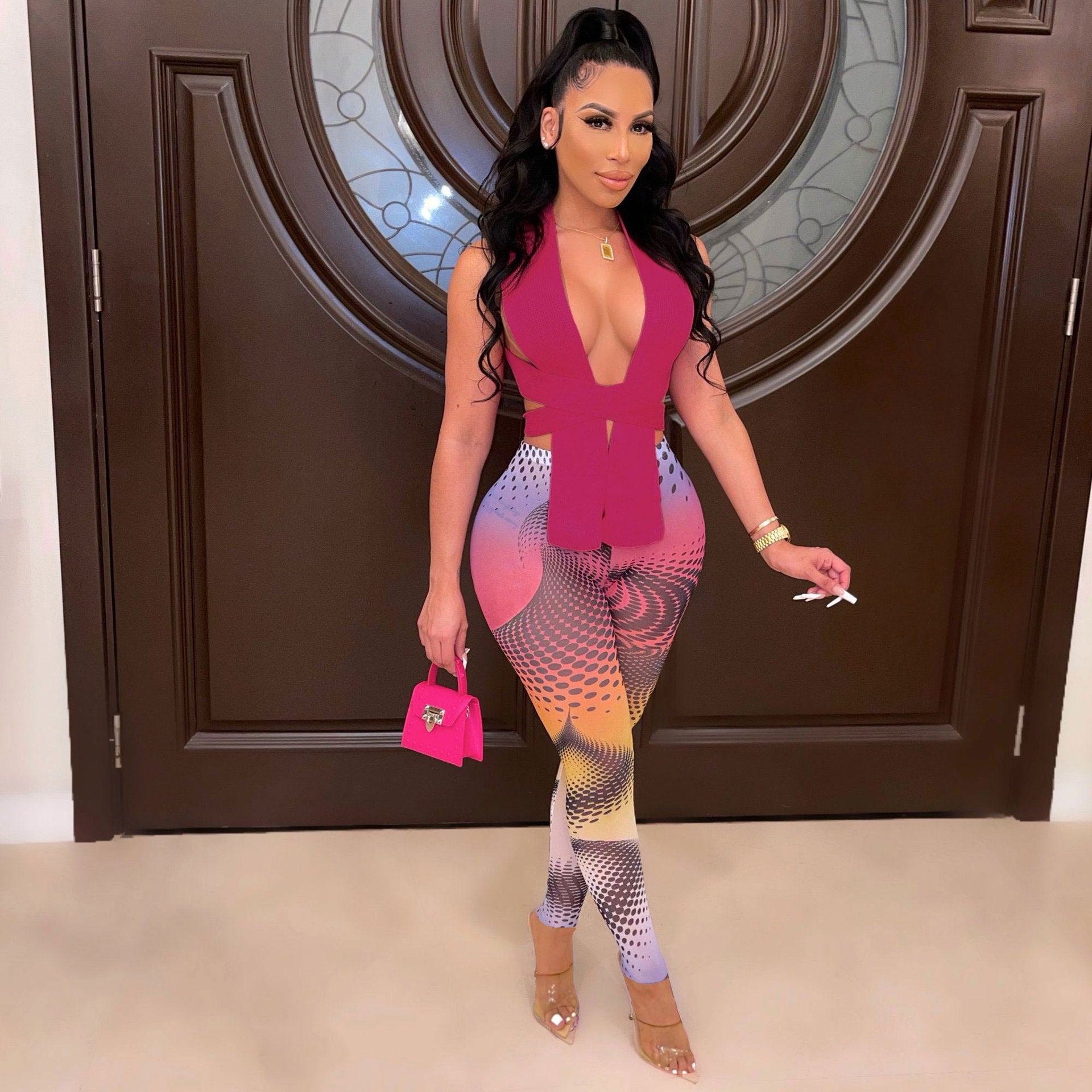 Hot sale sexy wrap chest print trousers set(AY1857)