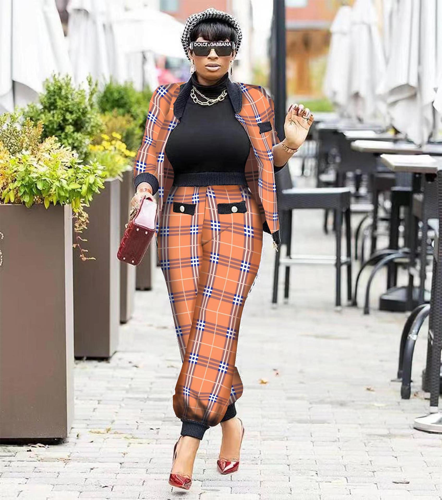 Print Button Jacket Pants Set(AY2354)