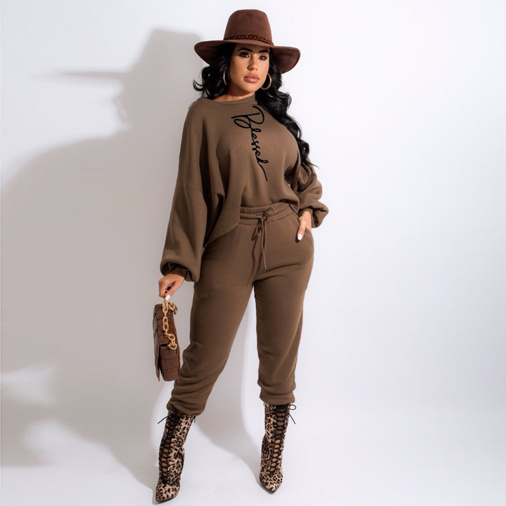 • Load image into Gallery viewer, Letter puff sleeve two-piece suit(AY1602)