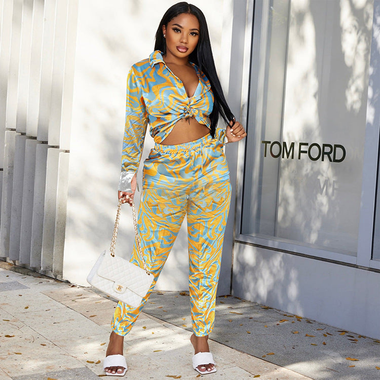 Printed Long Sleeve Shirt Trousers Set(AY2306)