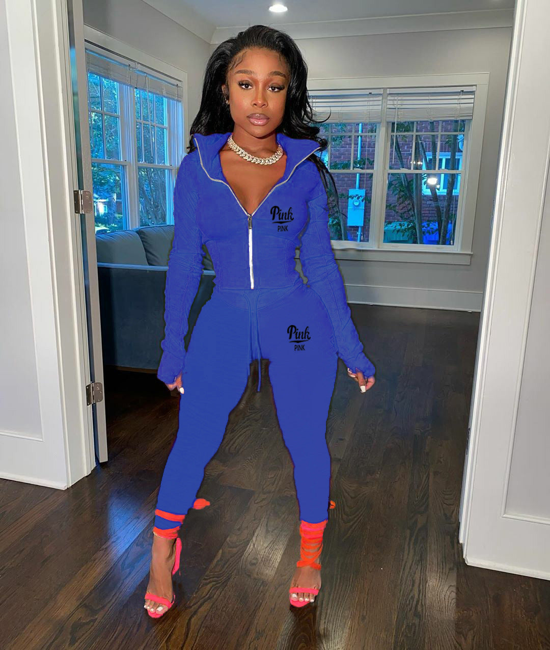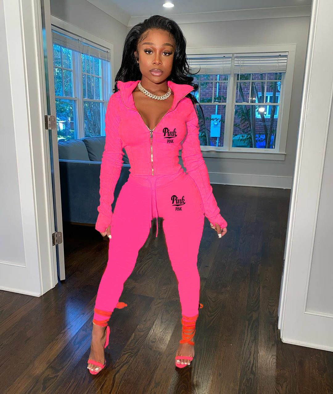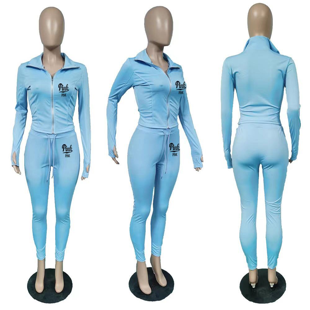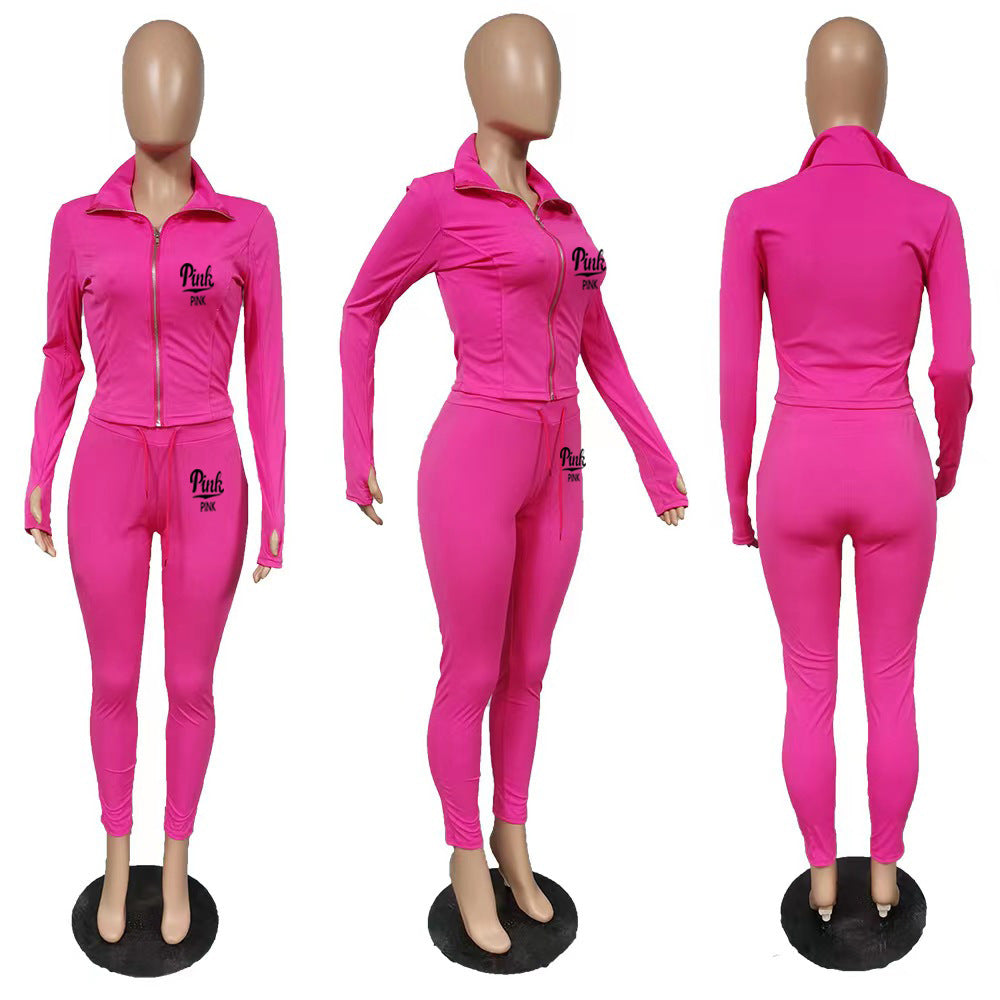 Solid Color Letter Print Two Piece Set(AY2386)