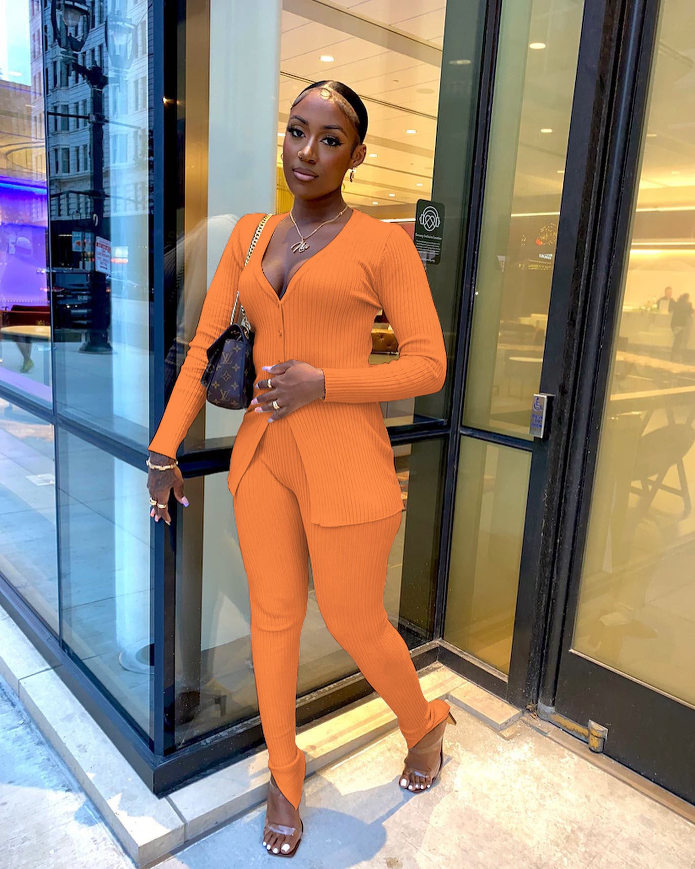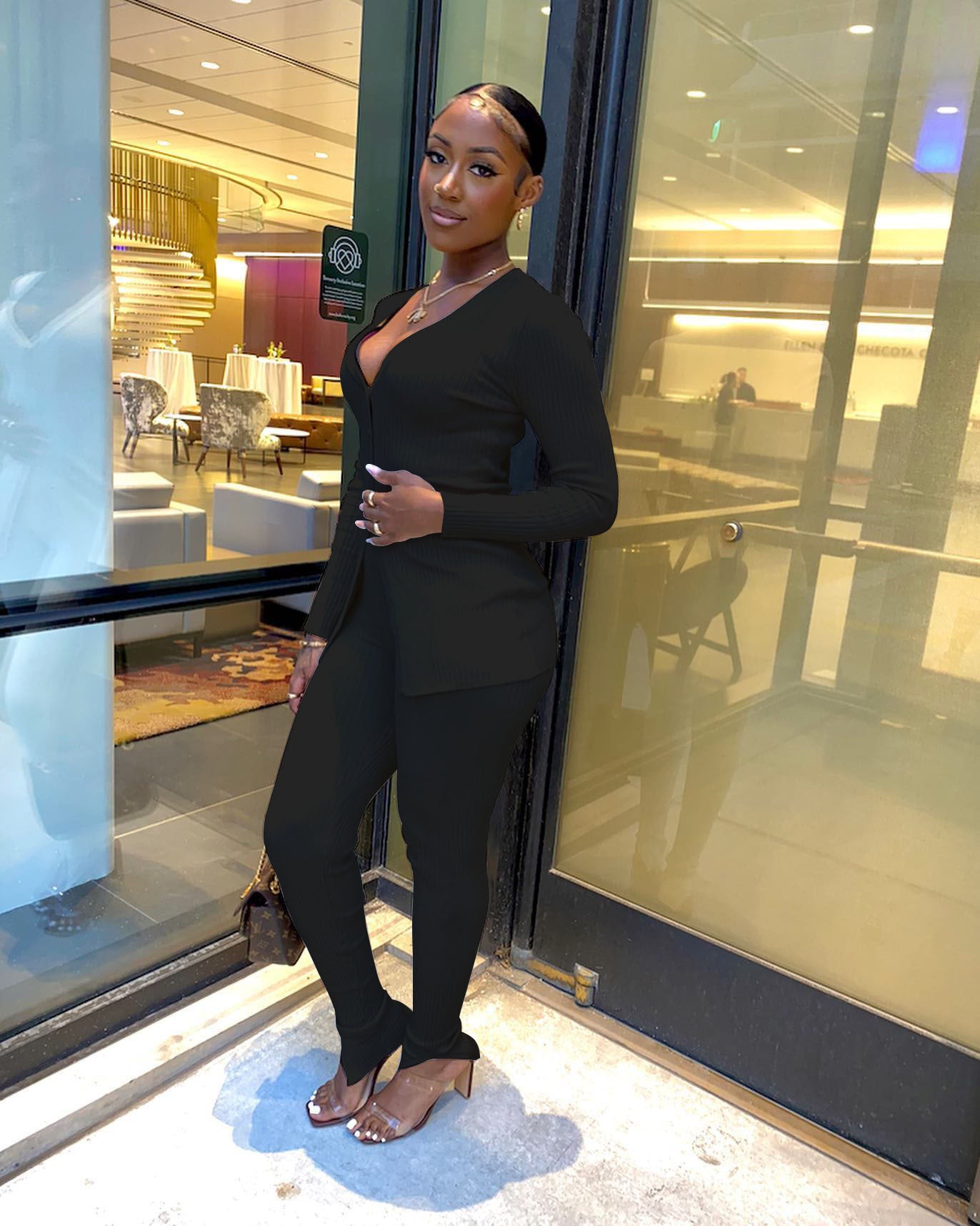 Thickened rib cardigan knitted two-piece set(AY2483)