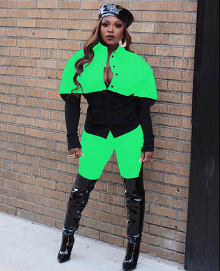 Stylish solid color zippered high-waisted two-piece suit AY2585