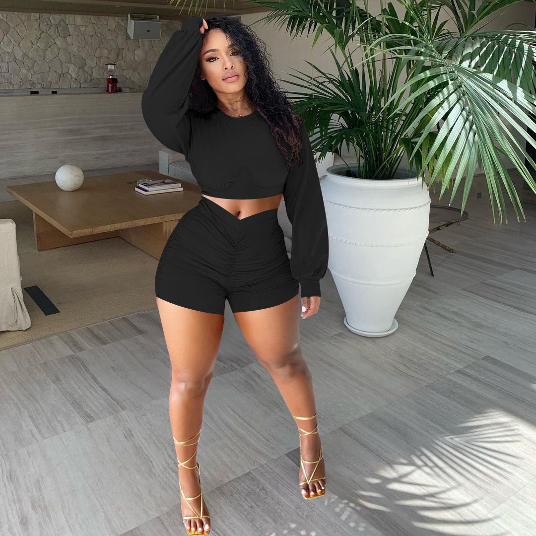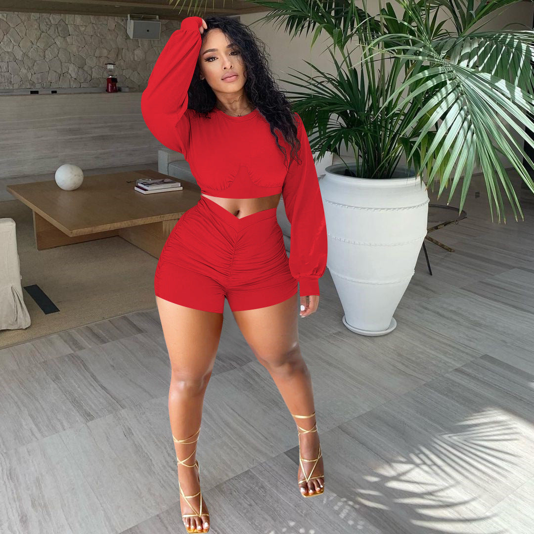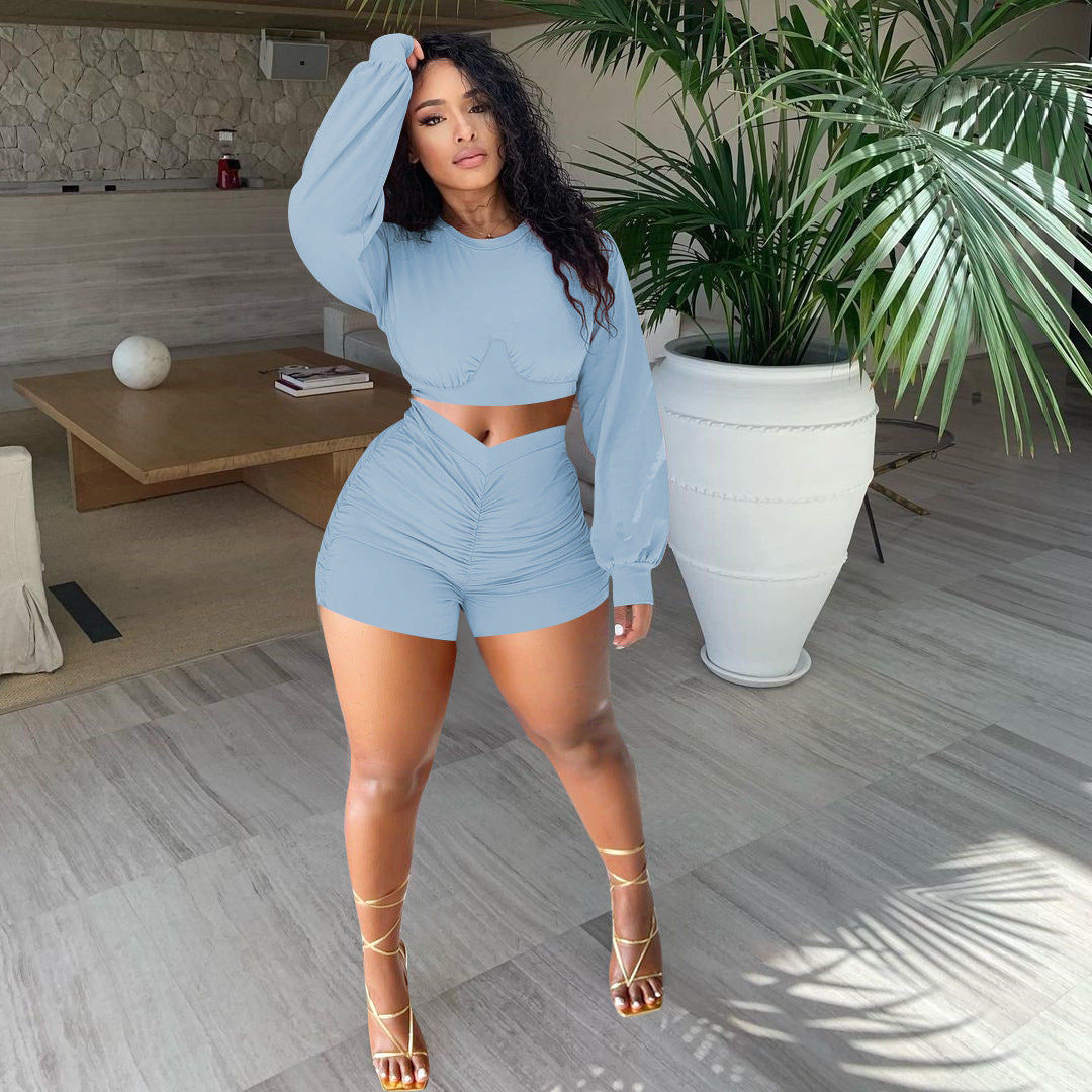 Fashion solid color pleated suit(AY1558)